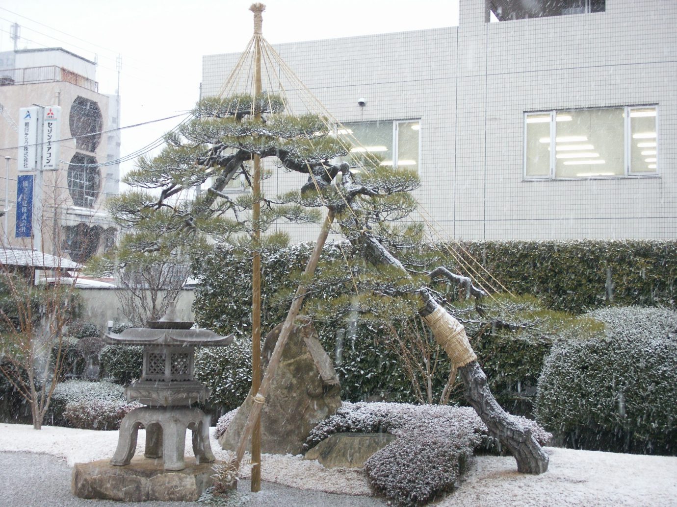 4尺の雪見燈籠(岡崎)据付と黒松の植栽